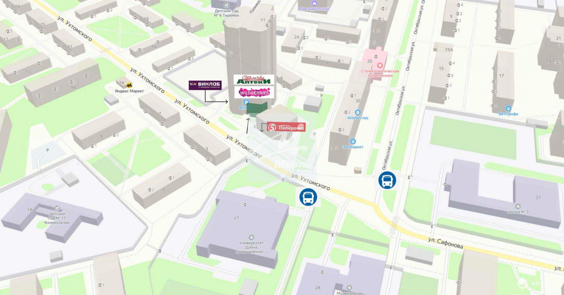 - Плотный жилой массив.