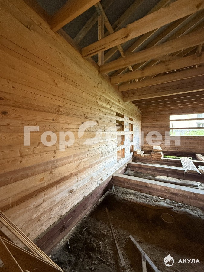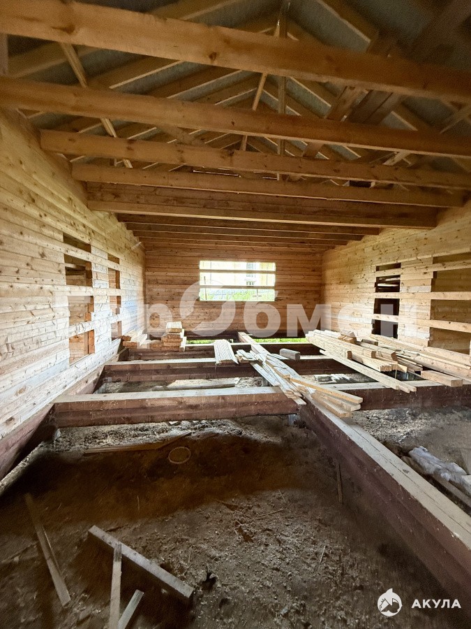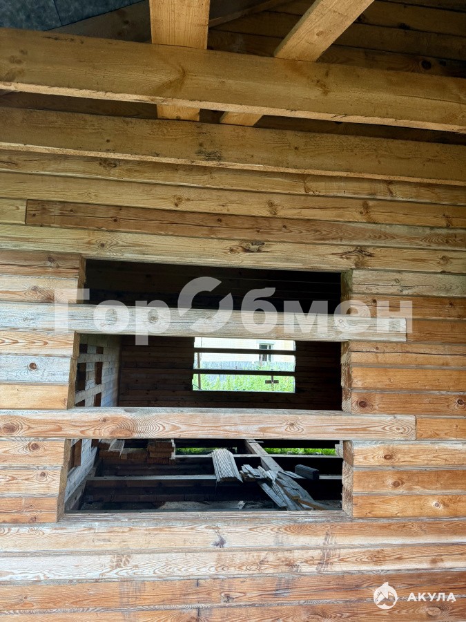 На участке стоит недостроенный дом из бруса, площадью 114 м2. Имеется проектная документация к нему.