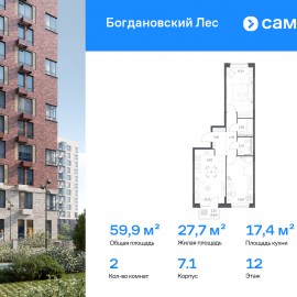 Строим кварталы для жизни с заботой о будущем. Предлагается 2-комнатная квартира комфорт-класса 59, 92 кв.м в корпусе 7.1 на 12 этаже, в ЖК «Богдановский Лес» Квартира без отделки. Доступность опции «отделка» и возможность комплектации мебелью и декором уточняйте у...