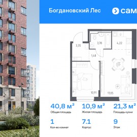 Строим кварталы для жизни с заботой о будущем. Предлагается 1-комнатная квартира комфорт-класса 40, 79 кв.м в корпусе 7.1 на 9 этаже, в ЖК «Богдановский Лес» Квартира с чистовой отделкой. Доступность дополнительных опций уточняйте у застройщика. Приобрести квартиру возможно по...