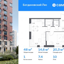Строим кварталы для жизни с заботой о будущем. Предлагается 1-комнатная квартира комфорт-класса 47, 96 кв.м в корпусе 7.4 на 10 этаже, в ЖК «Богдановский Лес» Квартира с чистовой отделкой. Доступность дополнительных опций уточняйте у застройщика. Приобрести квартиру возможно...