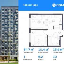 Строим кварталы для жизни с заботой о будущем. Предлагается 1-комнатная квартира комфорт-класса 34, 68 кв.м в корпусе 6.2 на 10 этаже, в ЖК «Горки Парк» Квартира без отделки. Доступность опции «отделка» и возможность комплектации мебелью и декором уточняйте у...