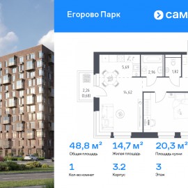 Строим кварталы для жизни с заботой о будущем. Предлагается 1-комнатная квартира комфорт-класса 48, 84 кв.м в корпусе 3.2 на 3 этаже, в ЖК «Егорово Парк» Квартира без отделки. Доступность опции «отделка» и возможность комплектации мебелью и декором уточняйте у...