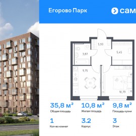 Строим кварталы для жизни с заботой о будущем. Предлагается 1-комнатная квартира комфорт-класса 35, 79 кв.м в корпусе 3.2 на 3 этаже, в ЖК «Егорово Парк» Квартира с предчистовой отделкой. Доступность дополнительных опций уточняйте у застройщика. Приобрести квартиру возможно по...