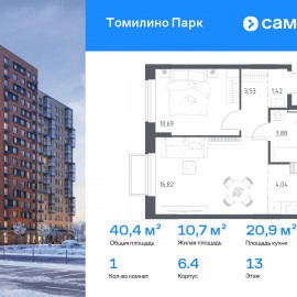 Строим кварталы для жизни с заботой о будущем. Предлагается 1-комнатная квартира комфорт-класса 40, 38 кв.м в корпусе 6.4 на 13 этаже, в ЖК «Томилино Парк» Квартира без отделки. Доступность опции «отделка» и возможность комплектации мебелью и декором уточняйте у...
