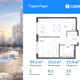 Строим кварталы для жизни с заботой о будущем. Предлагается 1-комнатная квартира комфорт-класса 34, 12 кв.м в корпусе 6.1 на 13 этаже, в ЖК «Горки Парк» Квартира с чистовой отделкой. Доступность дополнительных опций уточняйте у застройщика. Приобрести квартиру возможно по...
