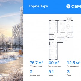 Строим кварталы для жизни с заботой о будущем. Предлагается 3-комнатная квартира комфорт-класса 76, 73 кв.м в корпусе 8.1 на 3 этаже, в ЖК «Горки Парк» Квартира без отделки. Доступность опции «отделка» и возможность комплектации мебелью и декором уточняйте у...