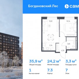 Строим кварталы для жизни с заботой о будущем. Предлагается 1-комнатная квартира комфорт-класса 35, 85 кв.м в корпусе 7.3 на 7 этаже, в ЖК «Богдановский Лес» Квартира без отделки. Доступность опции «отделка» и возможность комплектации мебелью и декором уточняйте у...