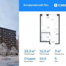 Строим кварталы для жизни с заботой о будущем. Предлагается квартира студия комфорт-класса 22, 29 кв.м в корпусе 10.2 на 5 этаже, в ЖК «Богдановский Лес» Квартира без отделки. Доступность опции «отделка» и возможность комплектации мебелью и декором уточняйте у...