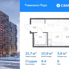 Строим кварталы для жизни с заботой о будущем. Предлагается квартира студия комфорт-класса 21, 72 кв.м в корпусе 6.4 на 6 этаже, в ЖК «Томилино Парк» Квартира без отделки. Доступность опции «отделка» и возможность комплектации мебелью и декором уточняйте у...