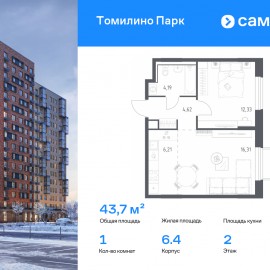 Строим кварталы для жизни с заботой о будущем. Предлагается 1-комнатная квартира комфорт-класса 43, 66 кв.м в корпусе 6.4 на 2 этаже, в ЖК «Томилино Парк» Квартира без отделки. Доступность опции «отделка» и возможность комплектации мебелью и декором уточняйте у...