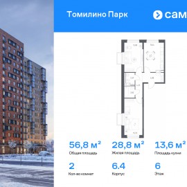 Строим кварталы для жизни с заботой о будущем. Предлагается 2-комнатная квартира комфорт-класса 58, 03 кв.м в корпусе 6.4 на 13 этаже, в ЖК «Томилино Парк» Квартира без отделки. Доступность опции «отделка» и возможность комплектации мебелью и декором уточняйте у...