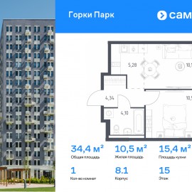 Строим кварталы для жизни с заботой о будущем. Предлагается 1-комнатная квартира комфорт-класса 34, 36 кв.м в корпусе 8.1 на 15 этаже, в ЖК «Горки Парк» Квартира с чистовой отделкой. Доступность дополнительных опций уточняйте у застройщика. Приобрести квартиру возможно по...