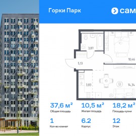 Строим кварталы для жизни с заботой о будущем. Предлагается 1-комнатная квартира комфорт-класса 37, 63 кв.м в корпусе 6.2 на 12 этаже, в ЖК «Горки Парк» Квартира без отделки. Доступность опции «отделка» и возможность комплектации мебелью и декором уточняйте у...