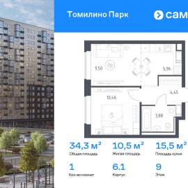 Строим кварталы для жизни с заботой о будущем. Предлагается 1-комнатная квартира комфорт-класса 34, 3 кв.м в корпусе 6.1 на 9 этаже, в ЖК «Томилино Парк» Квартира с предчистовой отделкой. Доступность дополнительных опций уточняйте у застройщика. Приобрести квартиру возможно...