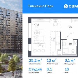 Строим кварталы для жизни с заботой о будущем. Предлагается квартира студия комфорт-класса 25, 2 кв.м в корпусе 6.1 на 16 этаже, в ЖК «Томилино Парк» Квартира с предчистовой отделкой. Доступность дополнительных опций уточняйте у застройщика. Приобрести квартиру возможно по...