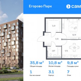 Строим кварталы для жизни с заботой о будущем. Предлагается 1-комнатная квартира комфорт-класса 35, 83 кв.м в корпусе 3.1 на 7 этаже, в ЖК «Егорово Парк» Квартира с чистовой отделкой. Доступность дополнительных опций уточняйте у застройщика. Приобрести квартиру возможно по...