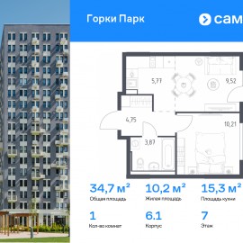 Строим кварталы для жизни с заботой о будущем. Предлагается 1-комнатная квартира комфорт-класса 34, 69 кв.м в корпусе 6.1 на 7 этаже, в ЖК «Горки Парк» Квартира с чистовой отделкой. Доступность дополнительных опций уточняйте у застройщика. Приобрести квартиру возможно по...