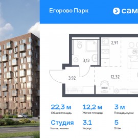 Строим кварталы для жизни с заботой о будущем. Предлагается квартира студия комфорт-класса 22, 28 кв.м в корпусе 3.1 на 5 этаже, в ЖК «Егорово Парк» Квартира без отделки. Доступность опции «отделка» и возможность комплектации мебелью и декором уточняйте у...