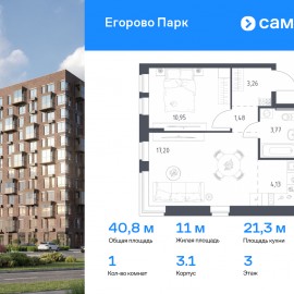 Строим кварталы для жизни с заботой о будущем. Предлагается 1-комнатная квартира комфорт-класса 40, 79 кв.м в корпусе 3.1 на 3 этаже, в ЖК «Егорово Парк» Квартира с чистовой отделкой. Доступность дополнительных опций уточняйте у застройщика. Приобрести квартиру возможно по...
