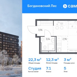 Строим кварталы для жизни с заботой о будущем. Предлагается квартира студия комфорт-класса 22, 29 кв.м в корпусе 7.1 на 5 этаже, в ЖК «Богдановский Лес» Квартира без отделки. Доступность опции «отделка» и возможность комплектации мебелью и декором уточняйте у...