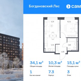 Строим кварталы для жизни с заботой о будущем. Предлагается 1-комнатная квартира комфорт-класса 34, 08 кв.м в корпусе 7.3 на 3 этаже, в ЖК «Богдановский Лес» Квартира без отделки. Доступность опции «отделка» и возможность комплектации мебелью и декором уточняйте у...