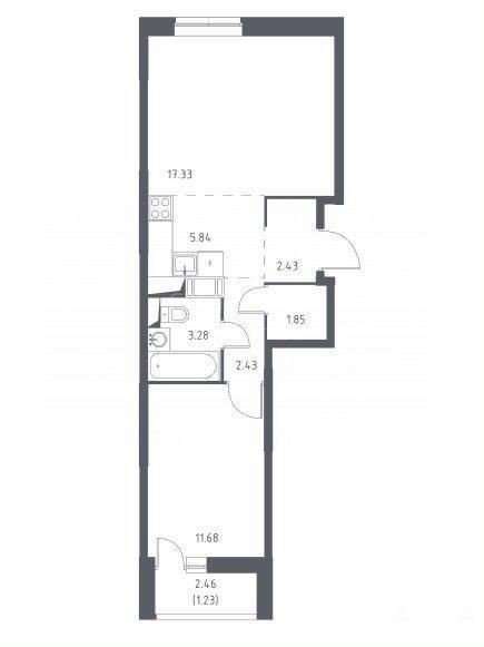 Евроформат. Кухня-гостиная и изолированная спальня.