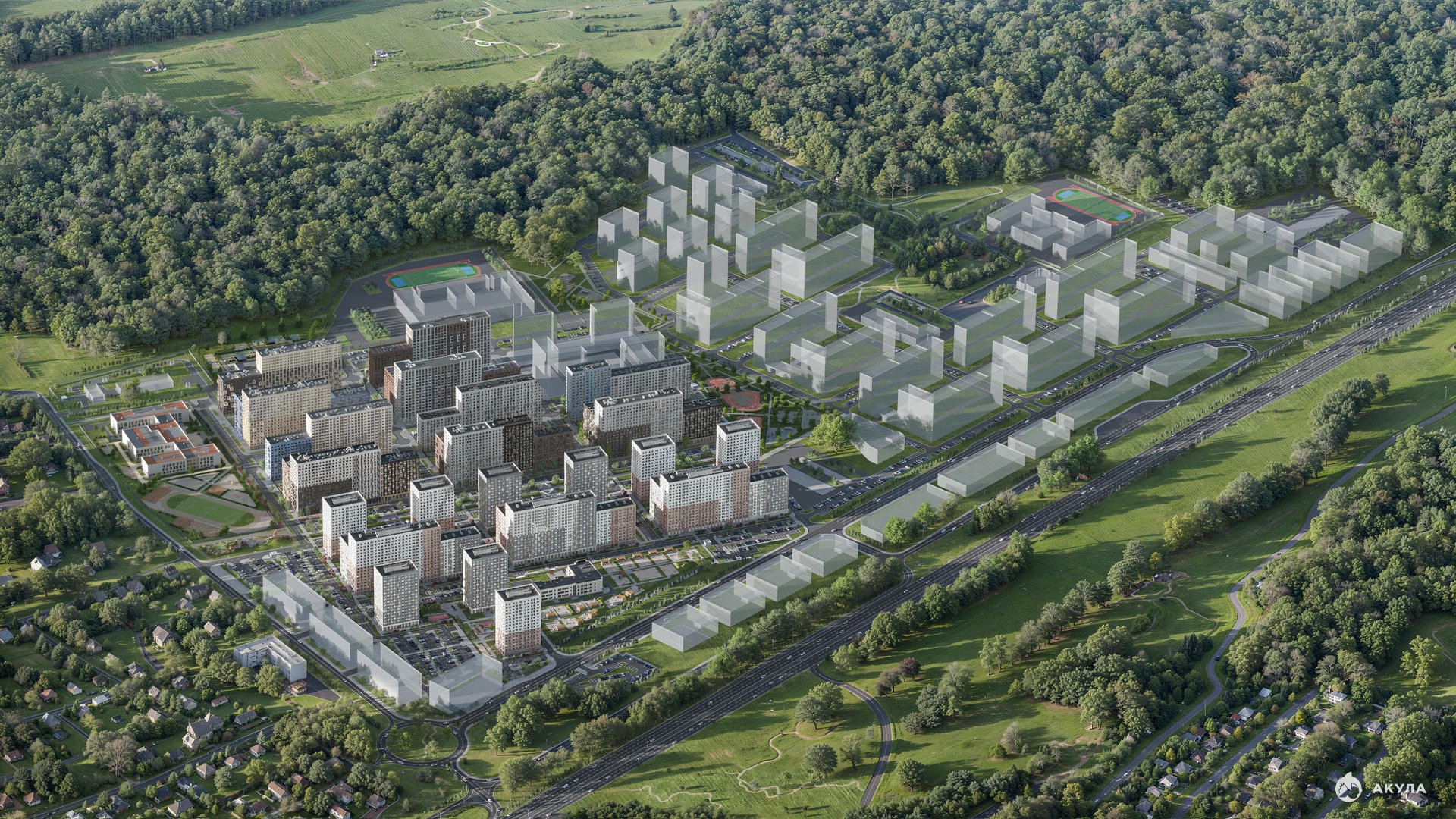 9. Поликлиника и спорткомплекс внутри проекта