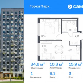 Строим кварталы для жизни с заботой о будущем. Предлагается 1-комнатная квартира комфорт-класса 34, 63 кв.м в корпусе 6.1 на 3 этаже, в ЖК «Горки Парк» Квартира без отделки. Доступность опции «отделка» и возможность комплектации мебелью и декором уточняйте у...