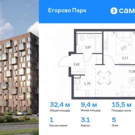 Строим кварталы для жизни с заботой о будущем. Предлагается 1-комнатная квартира комфорт-класса 32, 39 кв.м в корпусе 3.1 на 5 этаже, в ЖК «Егорово Парк» Квартира с предчистовой отделкой. Доступность дополнительных опций уточняйте у застройщика. Приобрести квартиру возможно по...