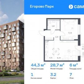 Строим кварталы для жизни с заботой о будущем. Предлагается 1-комнатная квартира комфорт-класса 44, 33 кв.м в корпусе 3.2 на 7 этаже, в ЖК «Егорово Парк» Квартира с чистовой отделкой. Доступность дополнительных опций уточняйте у застройщика. Приобрести квартиру возможно по...