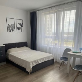 БЕЗ ТОРГА! Продается самая большая студия в ЖК Горки Парк. Площадь 27.1 м2 по ЕГРН. Расположена на 13 этаже 17 этажного дома 2023 г. постройки. Полностью укомплектована всей мебелью и техникой! Квартира под "тапочки", заехал и живи. Не требует никаких вложений, есть даже wi-fi роутер...