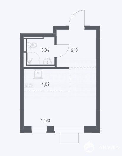 - 12.7 м²