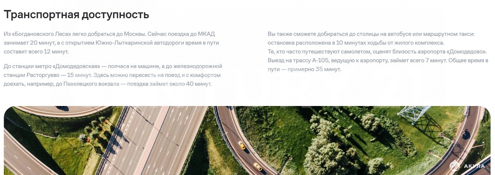 Отличная внутренняя и внешняя инфраструктура, 30-ти минутная доступность Москвы.